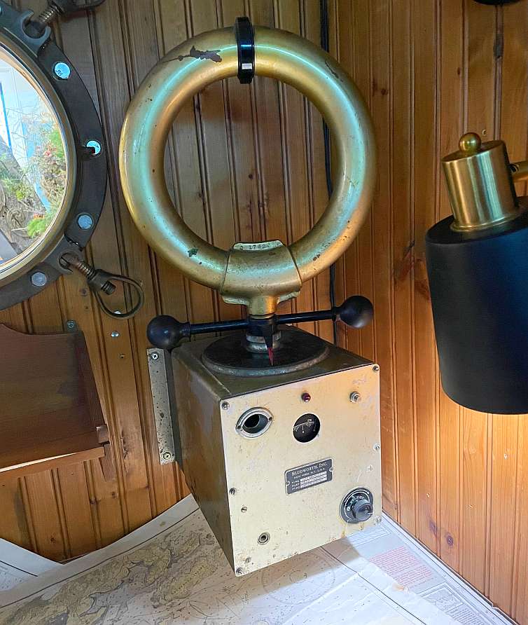 I could not ID a year of manufacture of this RDF, but comparison to a 1947 Bludworth RDF I saw 2 years ago at the Cape Ann Museum in Gloucester, MA (see Member News Spotlight, Sept-Oct 2023 LOWDOWN) suggests that the Maine Maritime Museum RDF is a somewhat earlier model, perhaps 1930s or pre-WW2. But for sure, sometime in the 1930s-1940s.