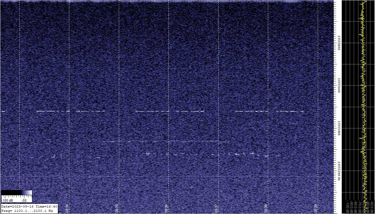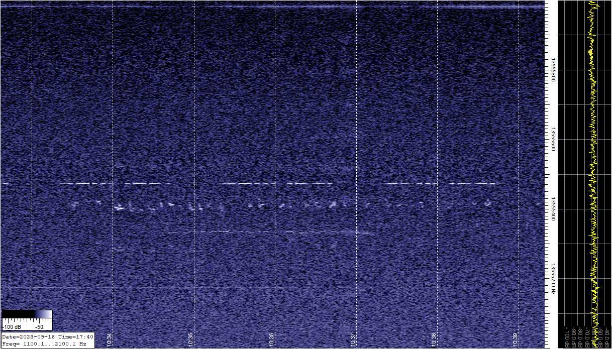 I found the screenshots of the irregular chirp(s). I thought they appeared as both in one shot, but actually they were about an hour apart. See attached images.