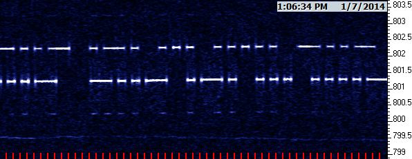 Early this afternoon, both stations are nice and clear, with XRS4 about 4 dB stronger, according to Argo. The clipper is generating an intermod product that, oddly, seems stronger on the low frequency side of the signal pair than it does above them. And, the wanderer around 74.3195 is still present.