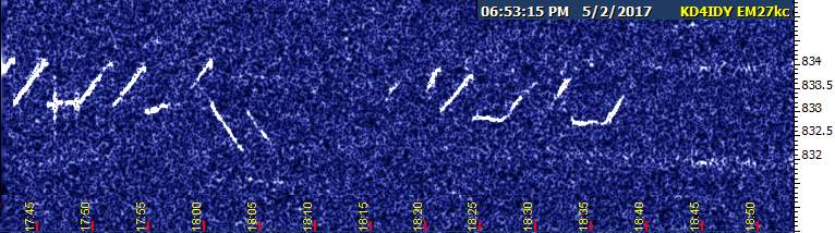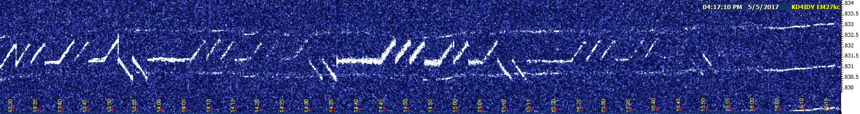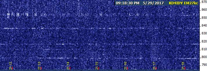 For the next three hours after the racket ended, there wasn't much...just a few minutes at a time of EH or NC or USC faintly visible, then back to nothing. More soundings resumed at 5:45 AM on the 27th (CDT), but fortunately not as many. NC, then EH, and then USC started showing up intermittently after 6 AM, returning to a typical daytime pattern before 7 AM.