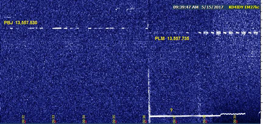 This time, MTI appeared for a little while and was audible for a few minutes, too. No sign of WV, PBJ, PLM, PCO, or FRC this time, however. The SIW duo were not terribly consistent, but I did see this from the slant mode signal: