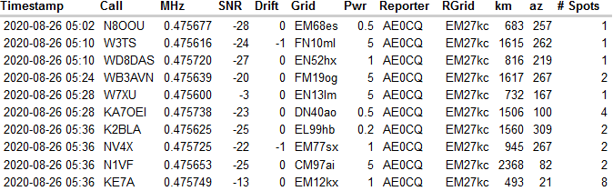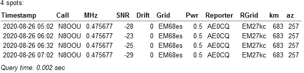 In reply to Re: N8OOU on 630m posted by Mike N8OOU on August 27, 2020