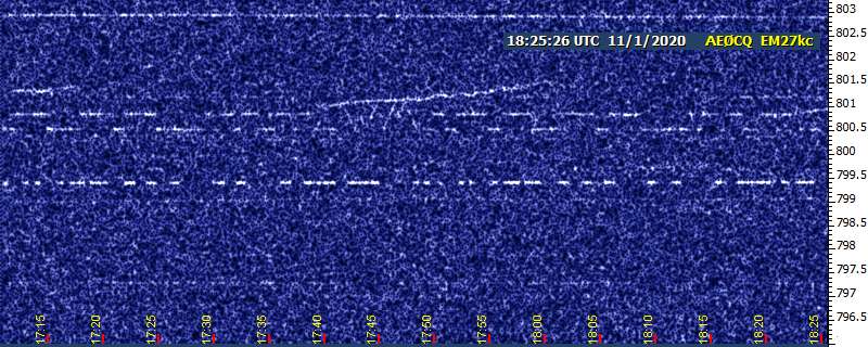 I'm guessing from the timing that the QRSS software got confused when the computer's clock reset itself from Daylight Time. I hope it was nothing "superunnatural" (as Mammy Yokum used to say in the comics) related to Halloween.